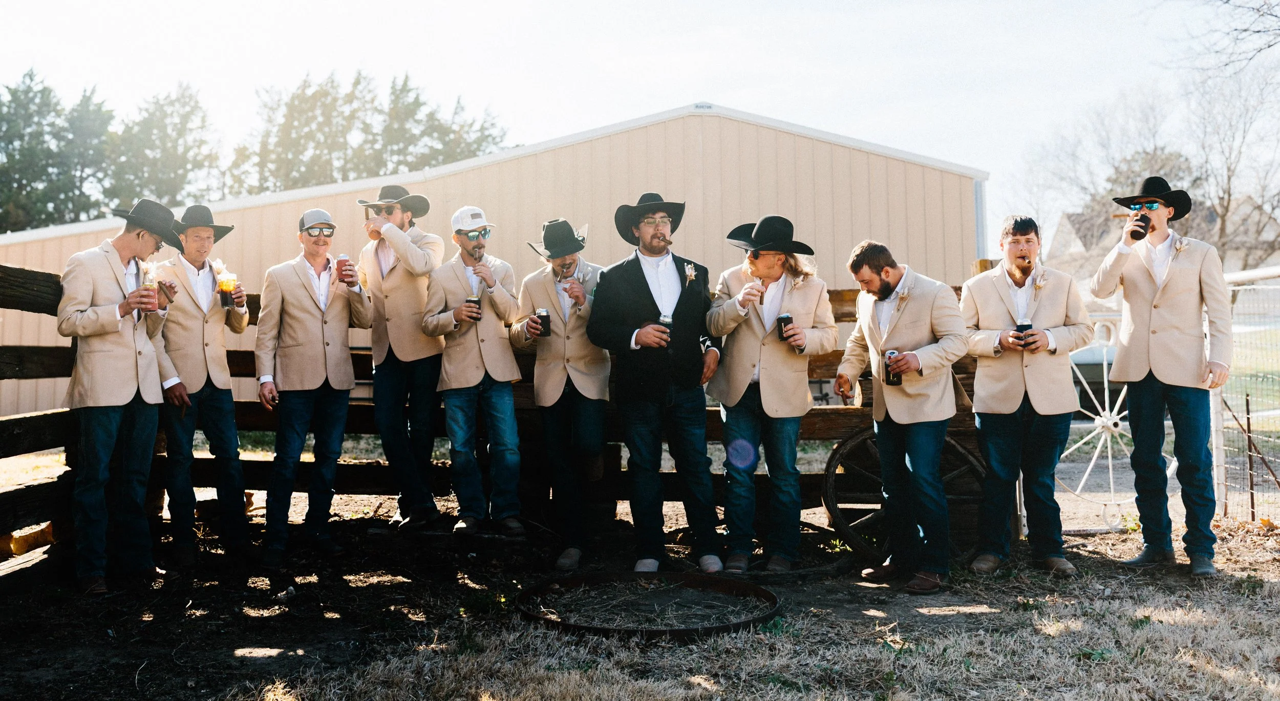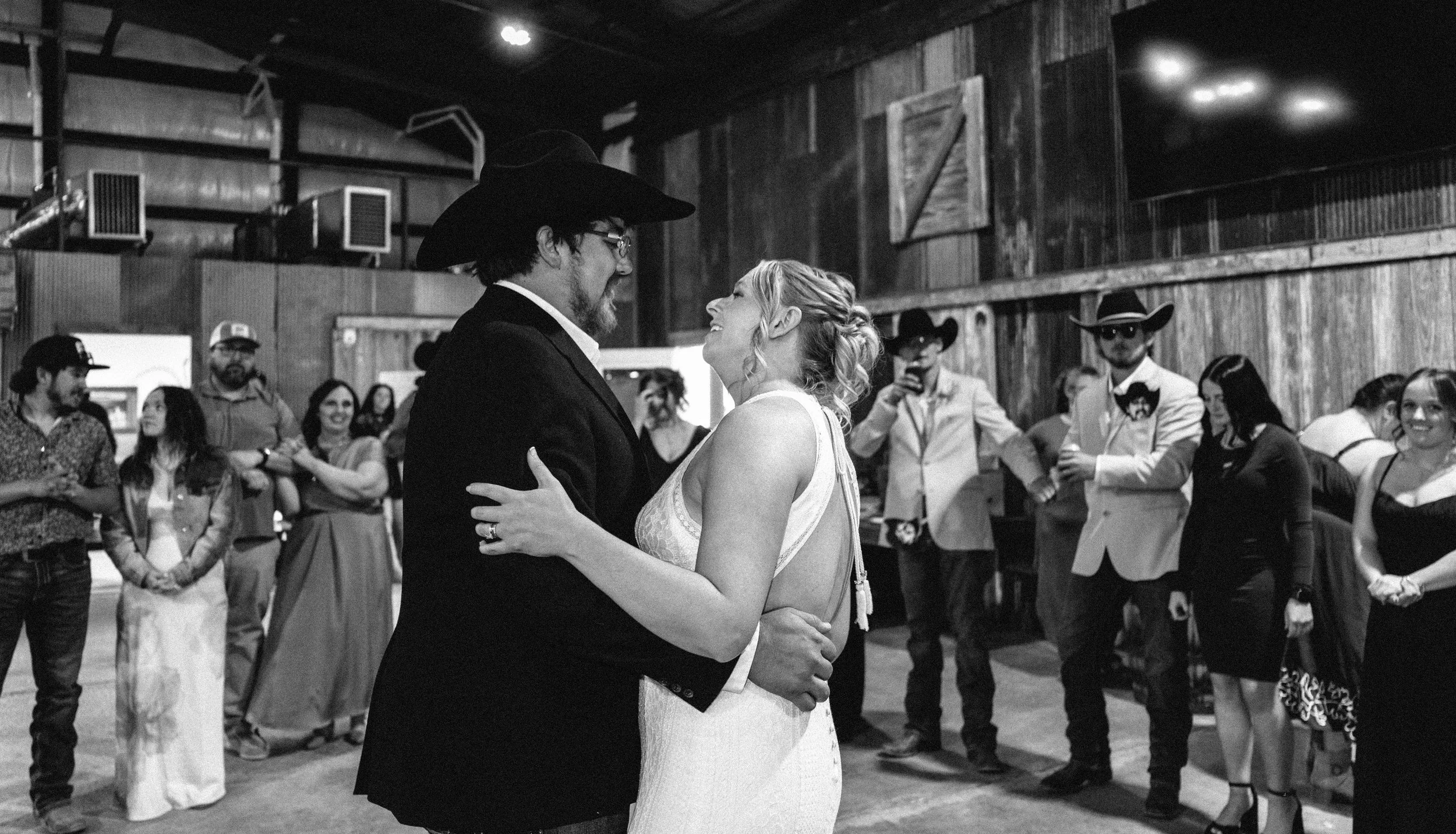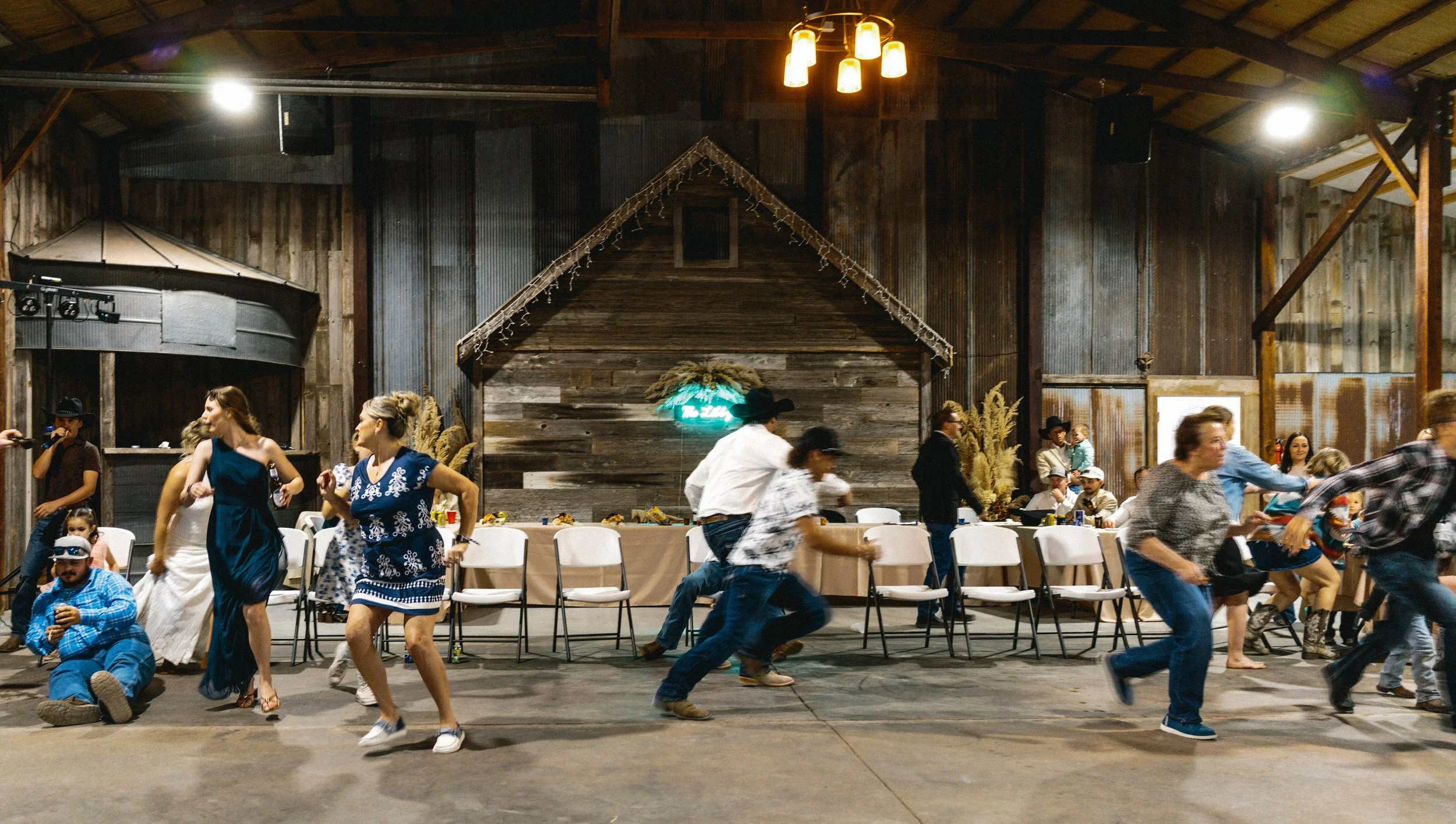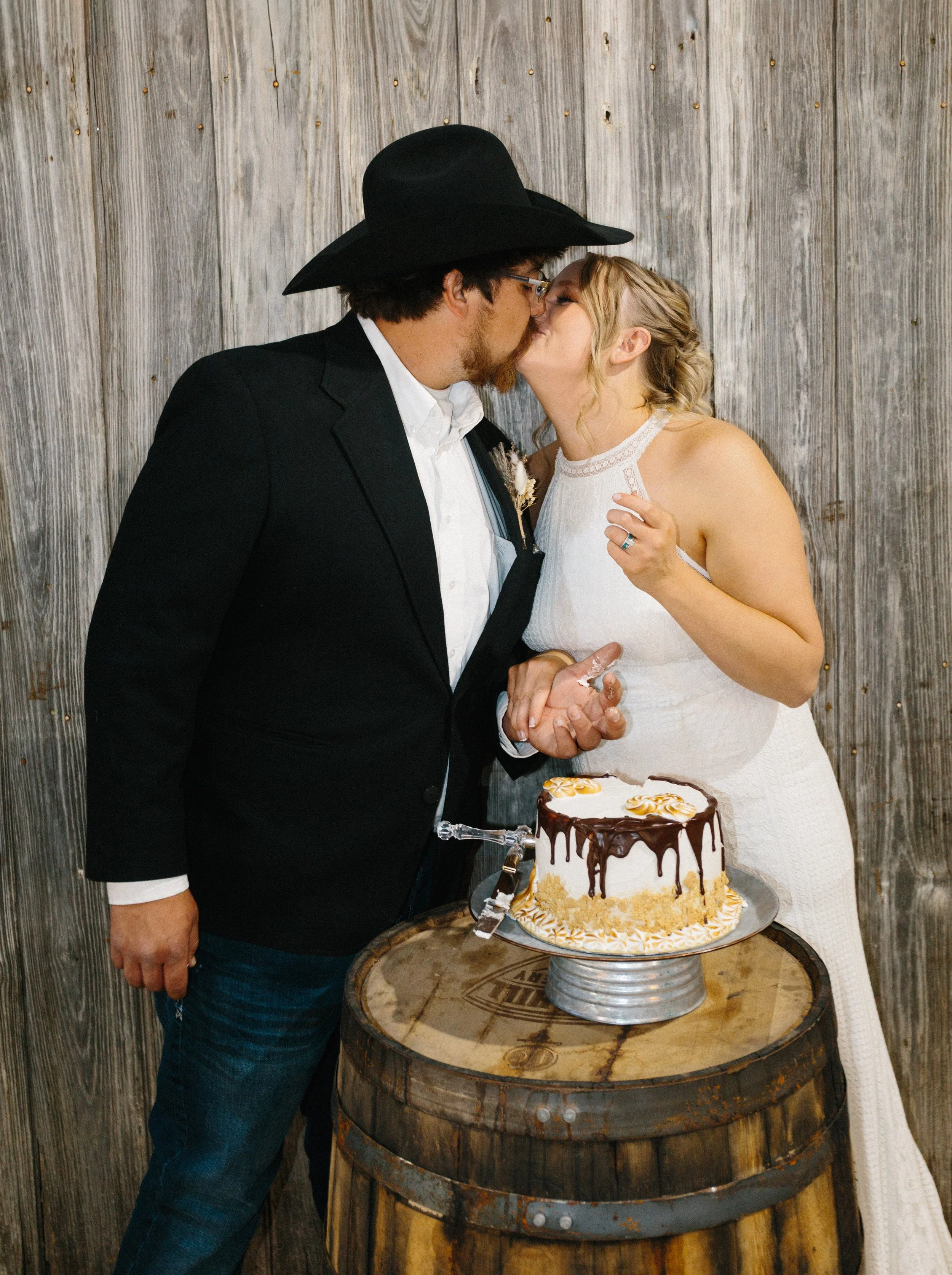 Their ceremony took place outdoors, with the Kansas wind making its presence known, but the temperature turned out to be just about perfect for early spring. Afterward, everyone gathered inside the venue’s rustic barn for a reception full of charm, laughter, and the kind of energy that makes a wedding unforgettable. Between the closeness of their family and friends, the constant silliness, and the wild games that kicked off after the first dances, Blaiz and Lara’s wedding felt like a true celebration in every sense of the word.