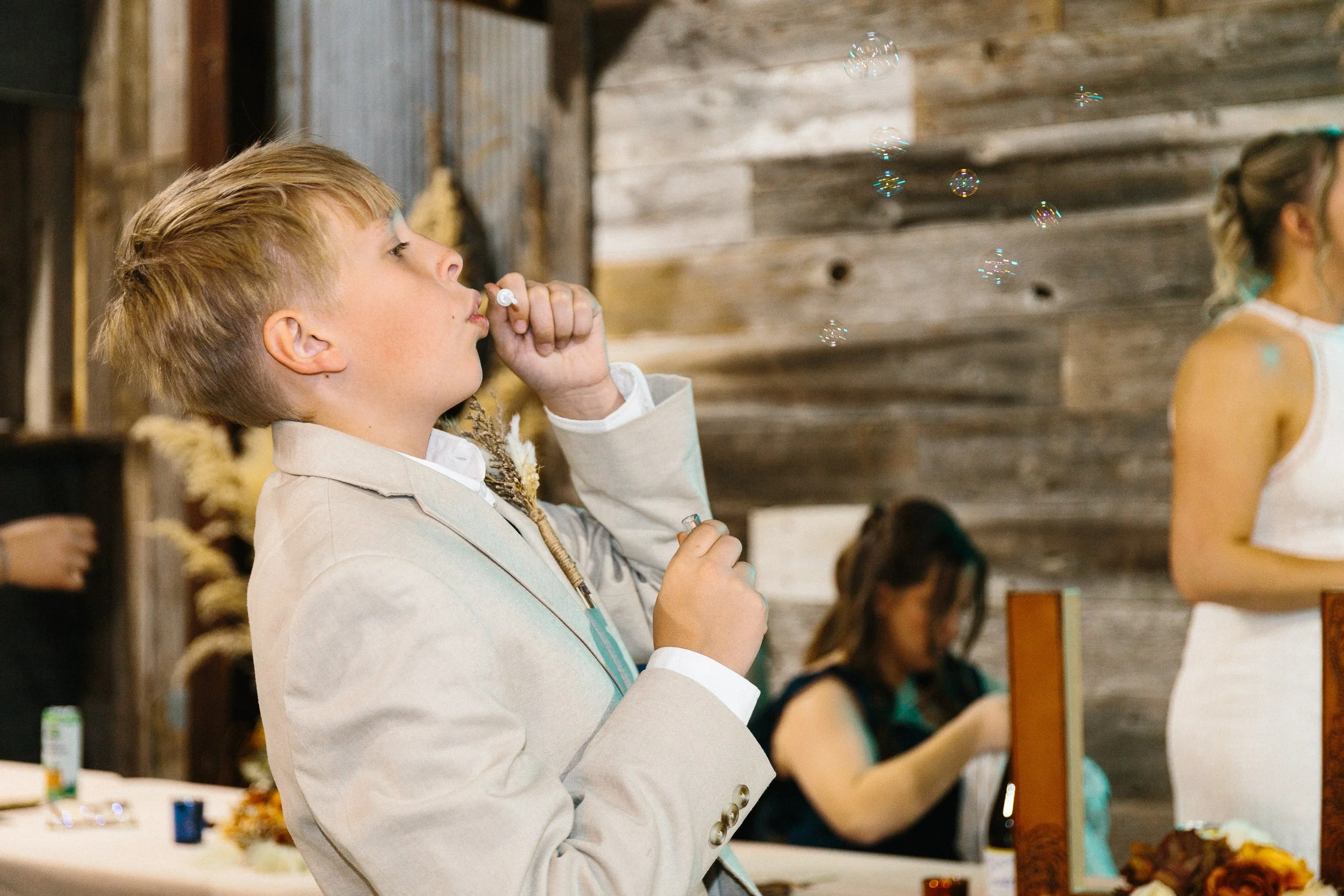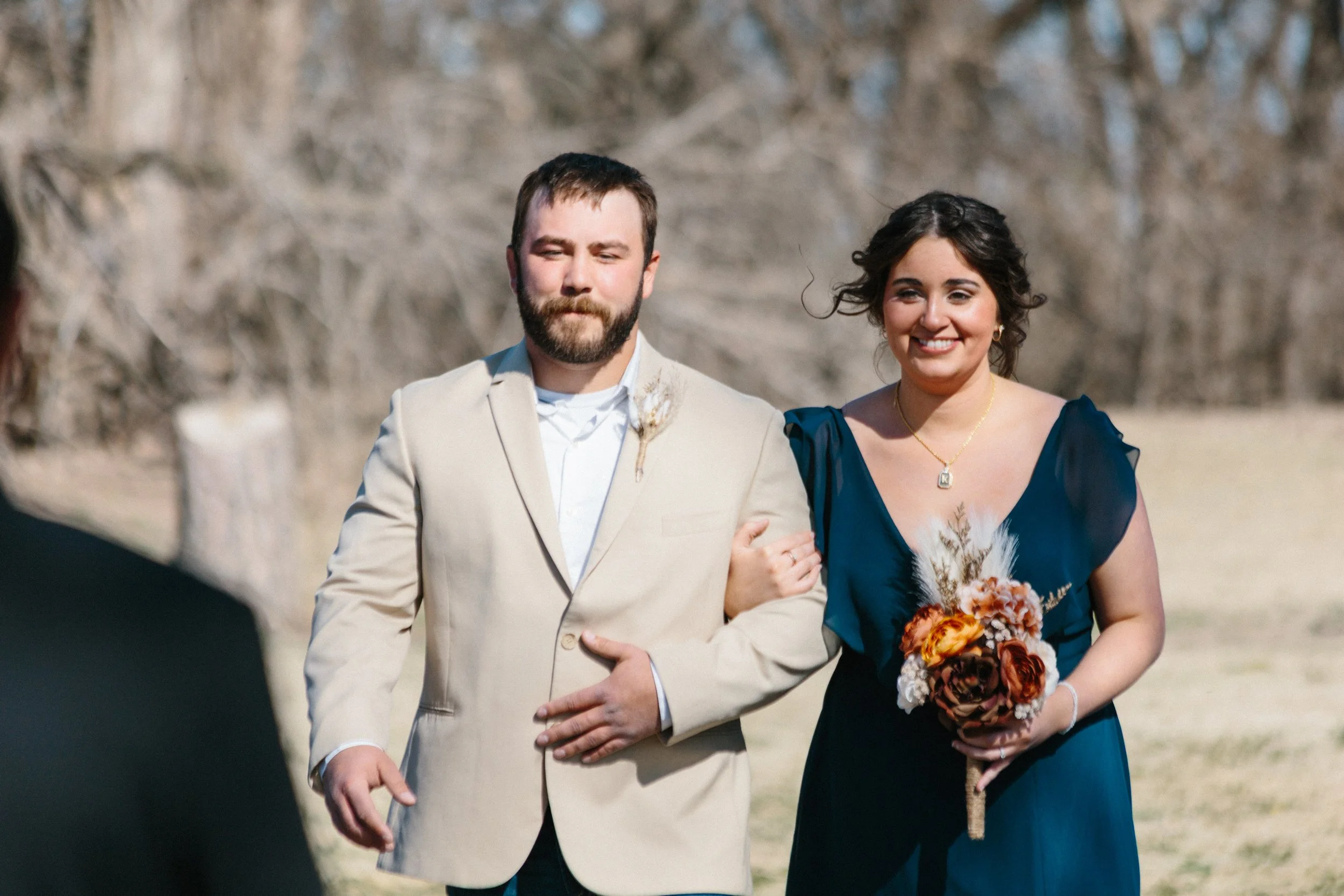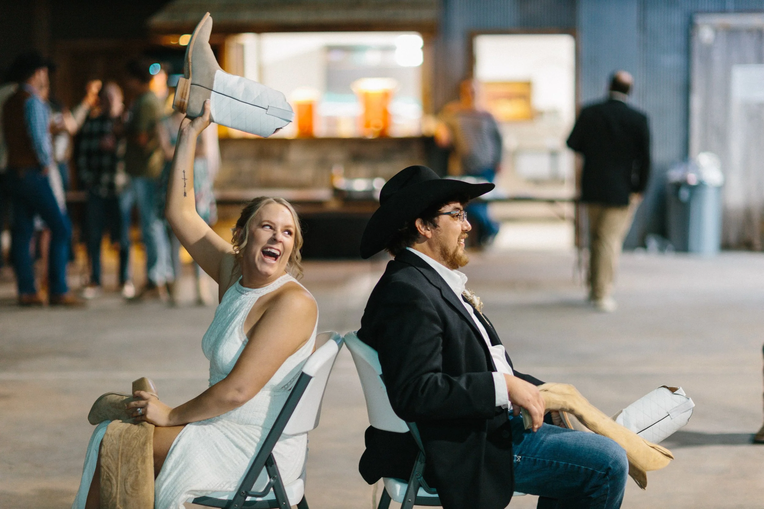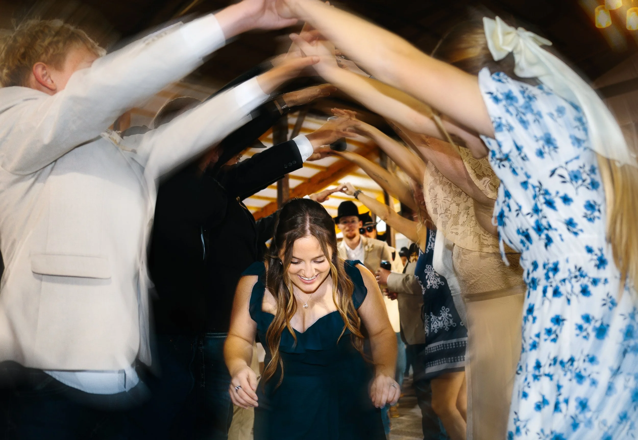 Their ceremony took place outdoors, with the Kansas wind making its presence known, but the temperature turned out to be just about perfect for early spring. Afterward, everyone gathered inside the venue’s rustic barn for a reception full of charm, laughter, and the kind of energy that makes a wedding unforgettable. Between the closeness of their family and friends, the constant silliness, and the wild games that kicked off after the first dances, Blaiz and Lara’s wedding felt like a true celebration in every sense of the word.