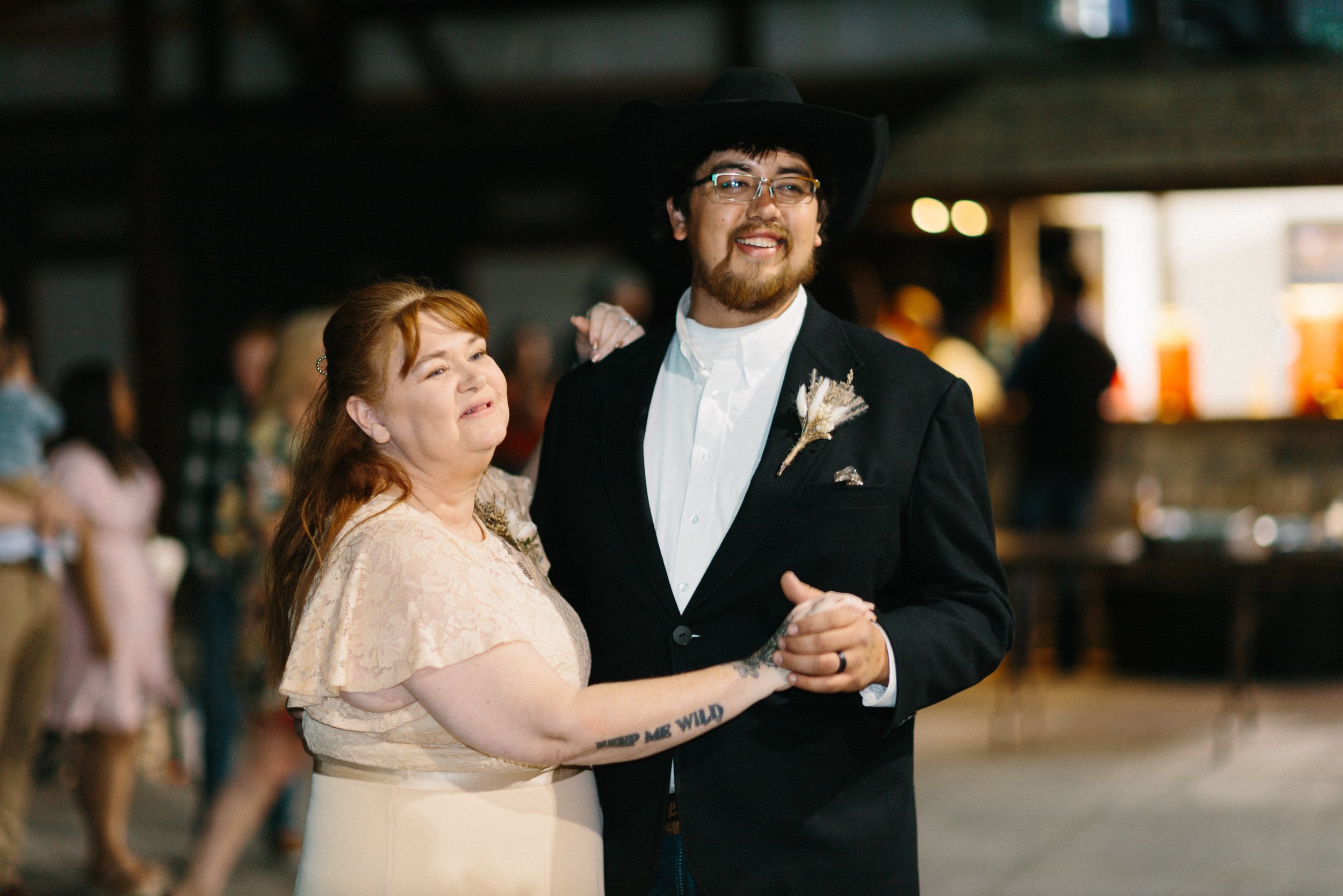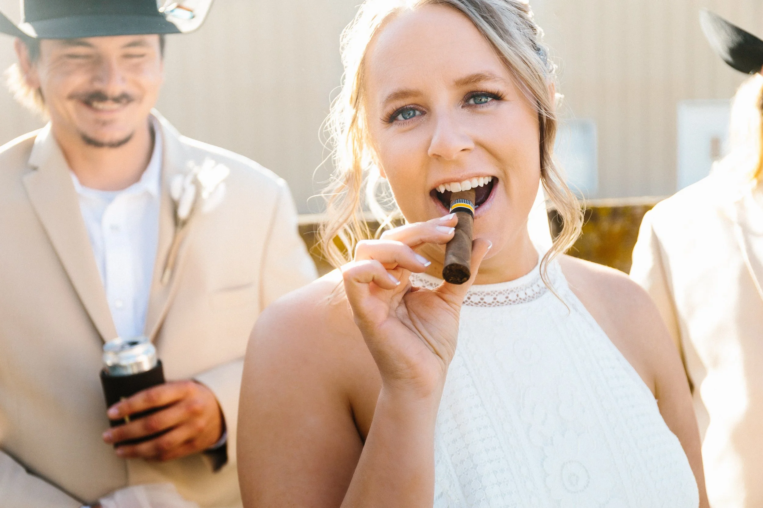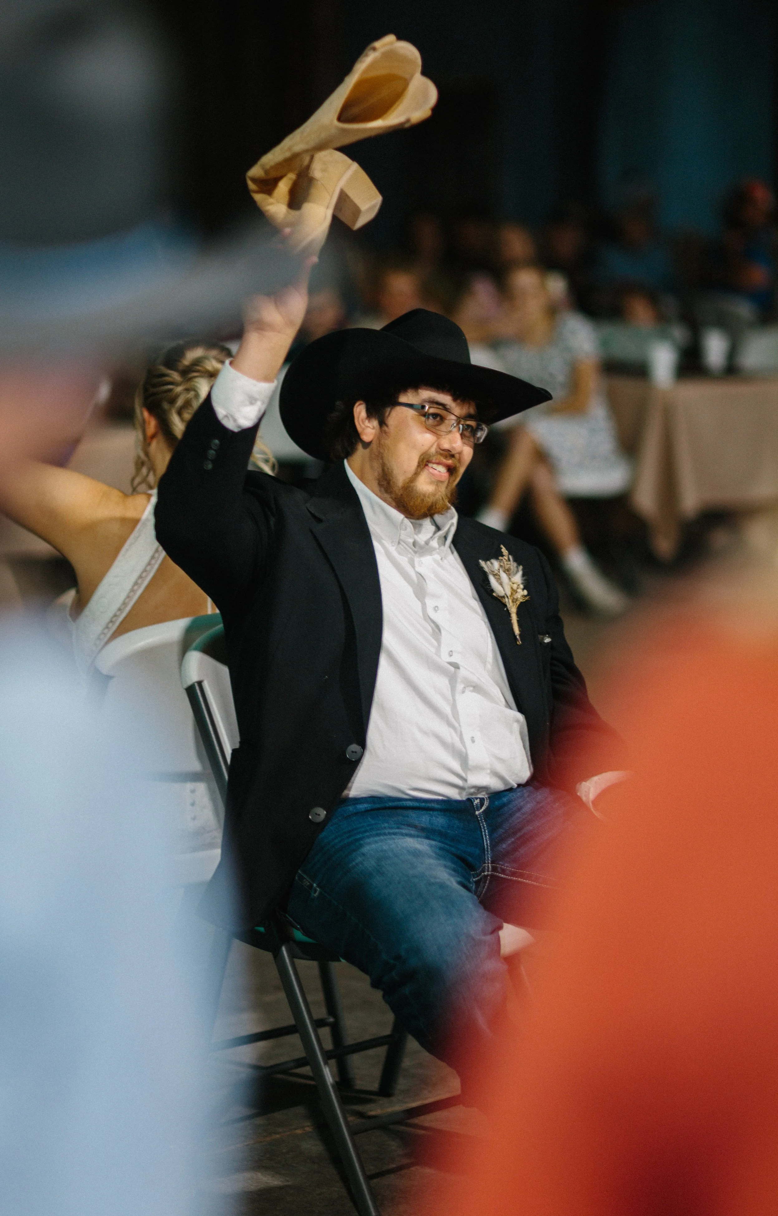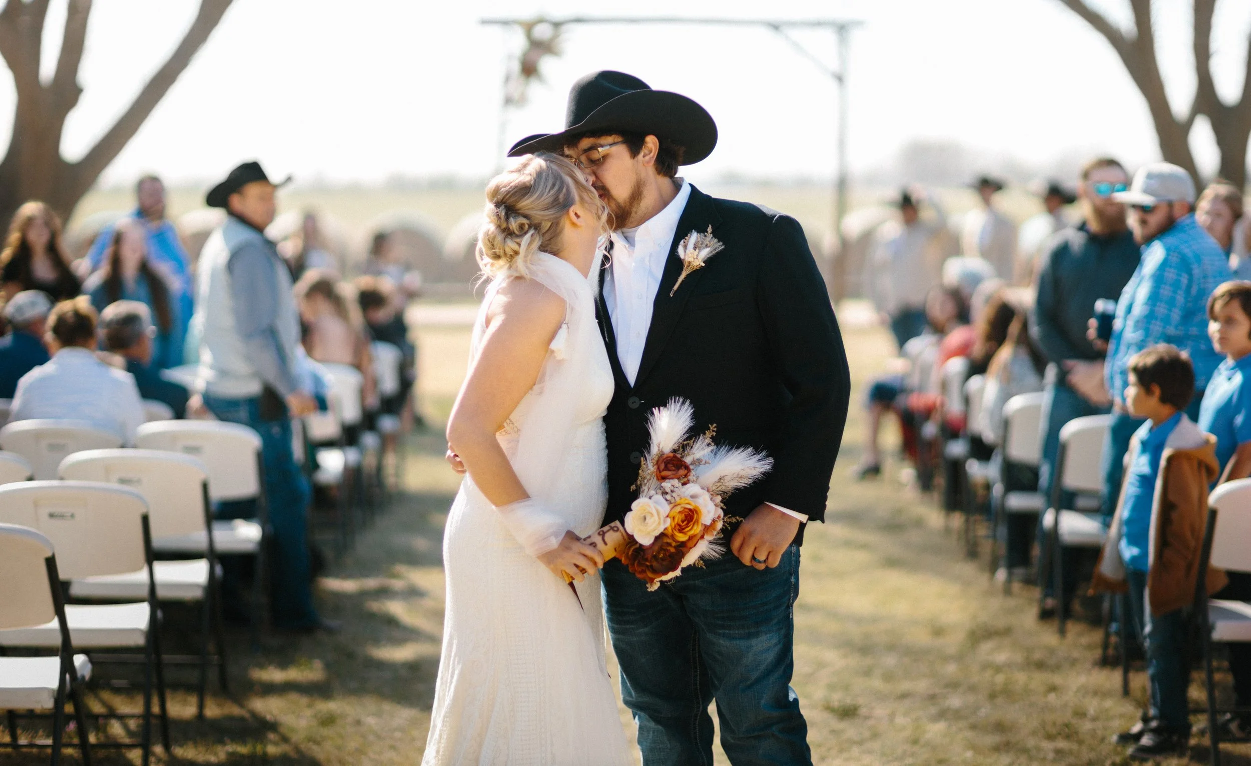 Their ceremony took place outdoors, with the Kansas wind making its presence known, but the temperature turned out to be just about perfect for early spring. Afterward, everyone gathered inside the venue’s rustic barn for a reception full of charm, laughter, and the kind of energy that makes a wedding unforgettable. Between the closeness of their family and friends, the constant silliness, and the wild games that kicked off after the first dances, Blaiz and Lara’s wedding felt like a true celebration in every sense of the word.